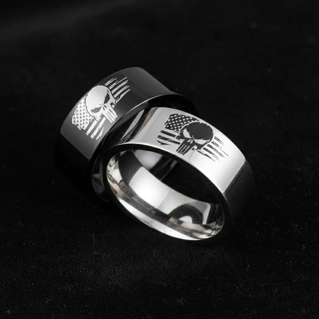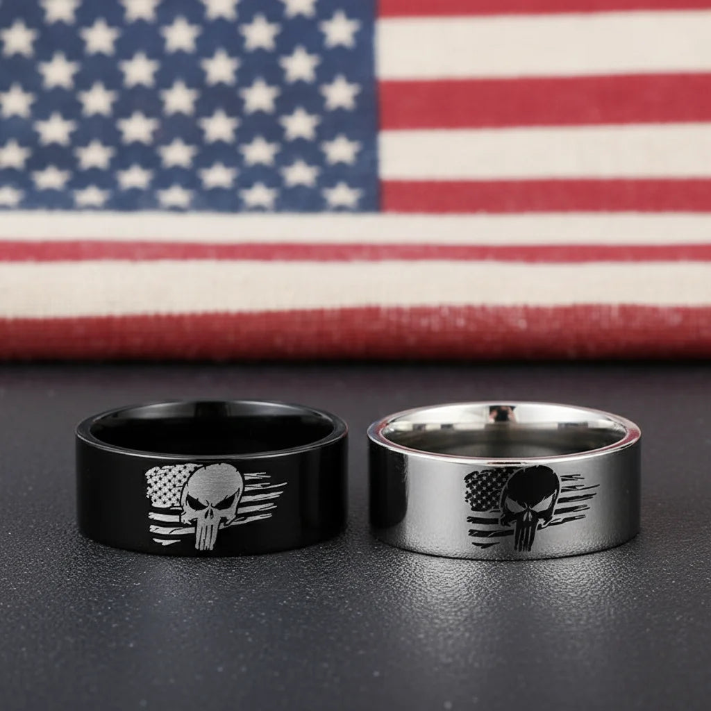 These aren't merely rings; they are a defiant declaration forged for those who refuse to blend in. Blending rebellious grit with unwavering national pride, they carve a unique mark, embodying an uncompromised spirit. This is your legacy, boldly worn.