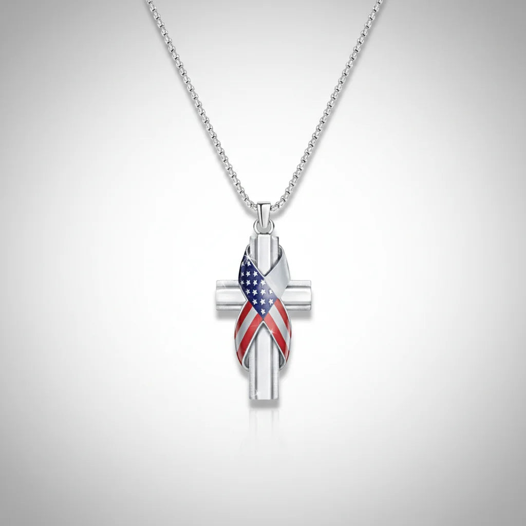 Flag Ribbon Cross Necklace - A Testament to Faith & Freedom